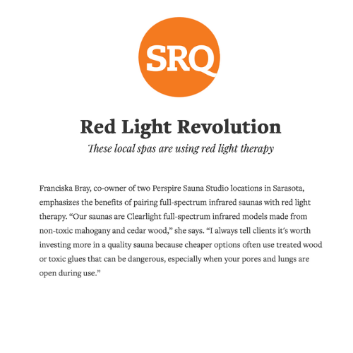 SRQ highlights how red and near-infrared light therapy (the same wavelengths used in the Clearlight Infrared Saunas) help boost circulation, reduce inflammation, speed recovery, soothe muscle and joint pain, and even support skin health. Perspire franchisee talks about the integration of Clearlight full-spectrum infrared plus red-light therapy and how Clearlight tech is at the cutting … Continue reading "Clearlight full-spectrum infrared models are quality saunas worth the investment."
