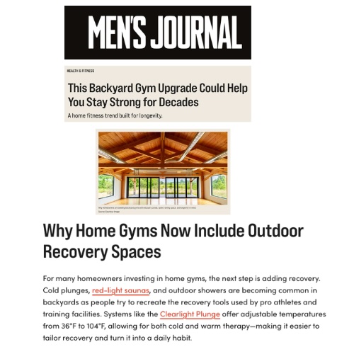 Appreciation to Joe Arangio and Men’s Journal who highlight the evolution of backyard gyms into fully integrated longevity spaces. This is an approach embodied by the Clearlight welllness ecosystem. Clearlight’s infrared and recovery solutions are positioned as part of this shift, where, as he notes, these environments are designed to “support strength, recovery, and long-term health … Continue reading "Clearlight Plunge Debuts as Backyard Gyms Evolve Into Full-Spectrum Longevity and Recovery Spaces"