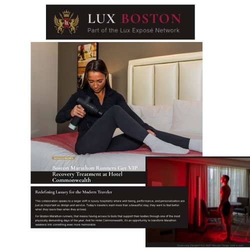 In its piece, “Boston Marathon Runners Get VIP Recovery Treatment at Hotel Commonwealth,” Lux Exposé highlights Clearlight’s role in shaping next-generation wellness at Hotel Commonwealth, alongside leading collaborators including Hyperice and Rekova. On site, Clearlight’s Sanctuary 2 Infrared Sauna and Full Body Red Light Tower anchor an integrated recovery experience, enhanced by compression and cold plunge offerings, combining heat, light, and cold to support recovery for … Continue reading "The Future of Recovery: Clearlight Featured in Lux Exposé "